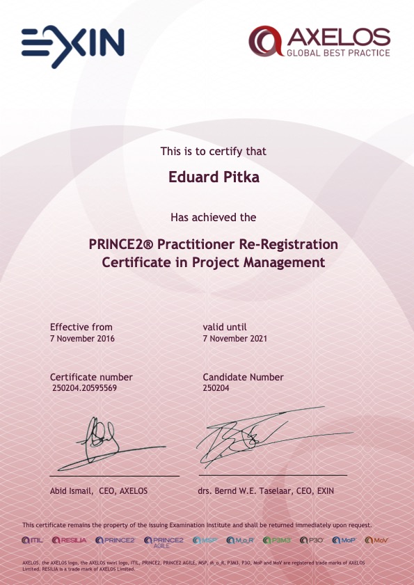 Certifikace PRINCE2 7 Foundation (stejně jako všechny ostatní verze a úrovně) je platná přesně 3 roky od data vydání. Po uplynutí těchto tří let máte tři možnosti, jak si certifikát udržet „aktivní“:
